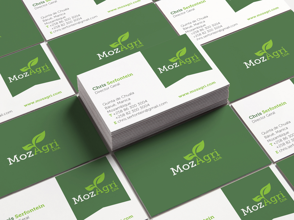 Corporate Identity update and collateral material for MozAgri Farms. The project consisted of refreshing their brand look and applying to various print and digital material, including the development of a CMS website and mascot development for their satellite distribution outlets throughout the country.